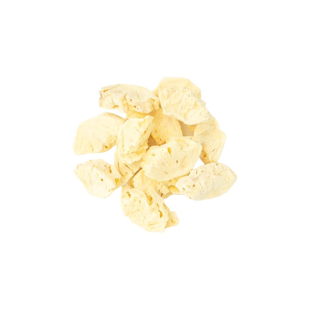 Náš lyo ananas je chutná a výživná svačina plná vitamínů a minerálů, připravená bez přidaných cukrů a konzervantů. Díky procesu sušení mrazem si ovoce zachovává své živiny, barvu a jedinečnou chuť!