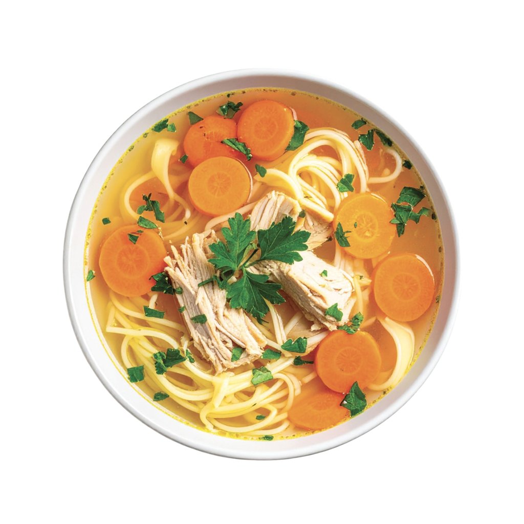 | Složení: | Kuřecí prsa 22,6 %, mrkev 22,6 %, nudle vlasové 13,6 % (pšeničná mouka, slepičí vejce), petržel 11,3 %, celer 11,3 %, cibule 9 %, česnek 3,4 %, petržel nať 1,9 %, koření (nové koření, bobkový list, pepř černý, petržel nať, libeček), dextróza, antioxidant: kyselina L-askorbová, extrakt koření. |