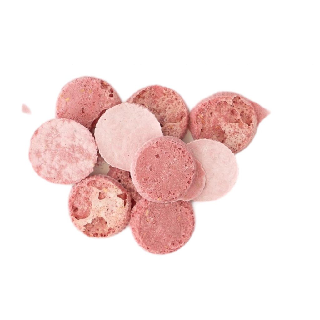Křupavá lyofilizovaná jogurtová sušenka, která spojuje jemnou chuť jogurtu s příchutí lesních plodů.