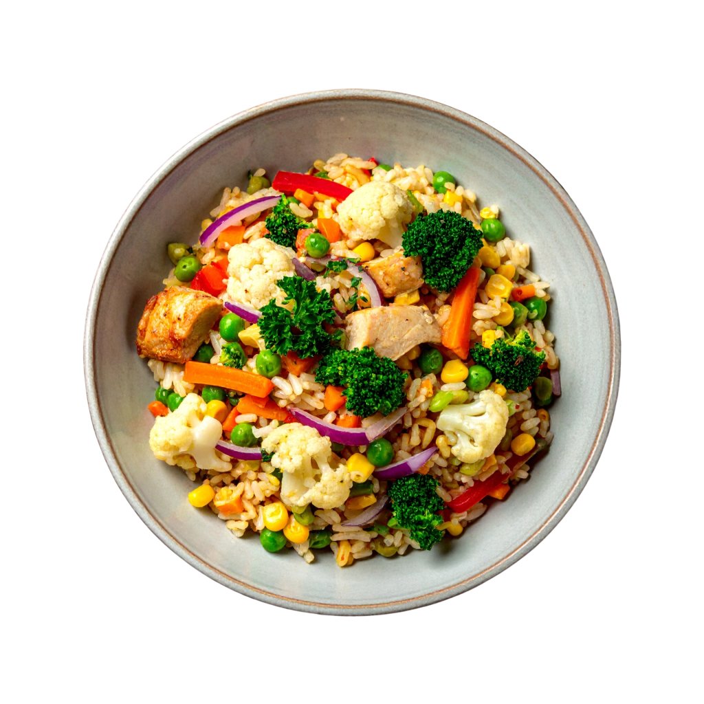 Lyo Rizoto se zeleninou a kuřecím masem - lehké a chutné jídlo plné šťavnatých kousků kuřete, rýže a barevné zeleniny.